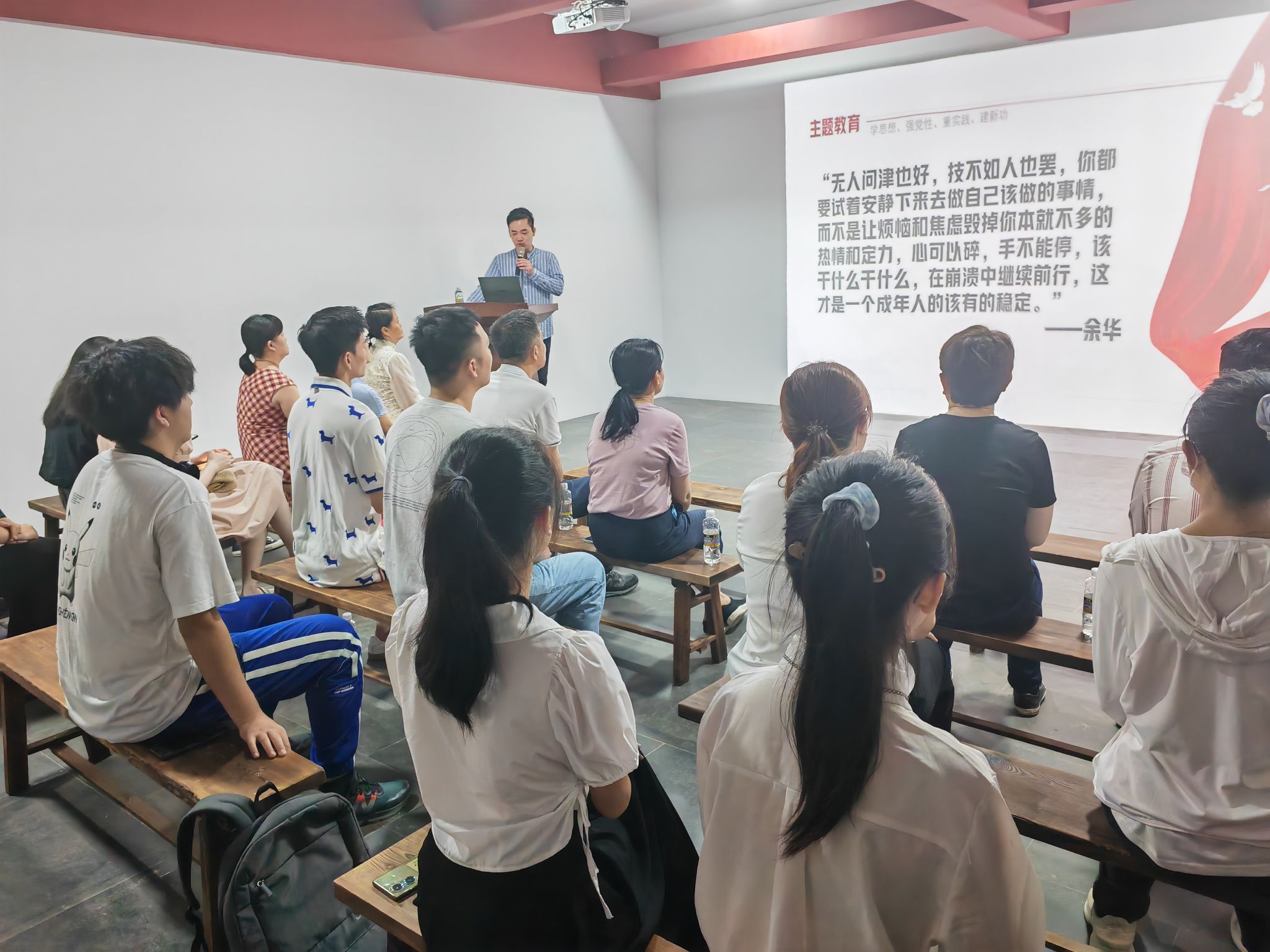 17日上午,三沙卫视党支部书记郑扬、副书记范江虹带领12名支部党员同志到我馆学习参观,并与我馆师生联合开展主题教育微宣讲活动,由栾子洲老师对支部党员同志和师生讲解员展开主题教育宣讲。