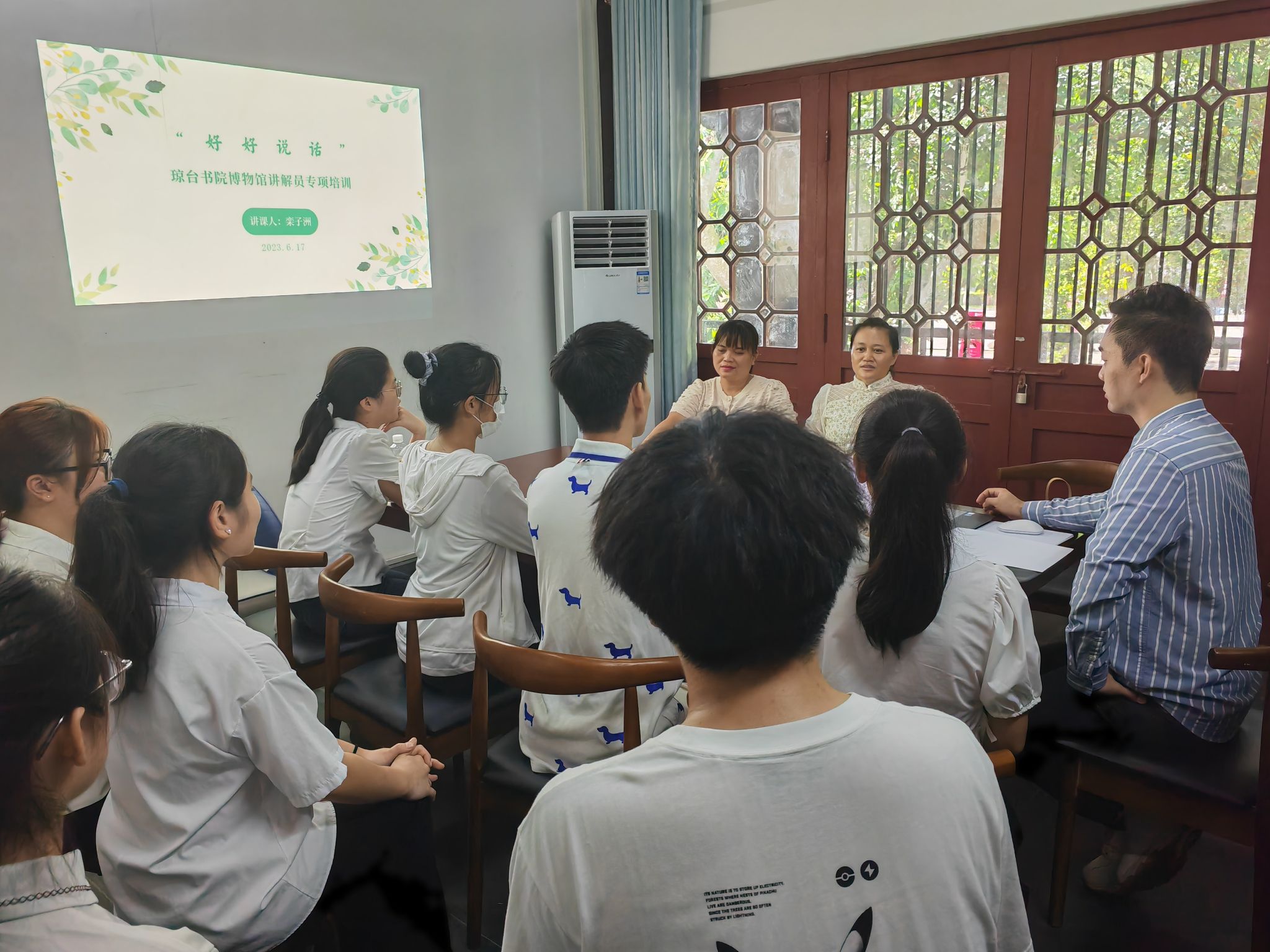 为深入学习宣传贯彻党的二十大精神和习近平总书记文化传承发展座谈会重要讲话精神,更好地传扬琼崖红色革命文化,讲好琼崖故事,传播好中国声音,提高我馆师生讲解员的综合素质和专业水平,6月17日,我馆邀请三沙卫视主任播音员主持人、第二十七届“海南青年五四奖章”获得者栾子洲老师为我馆专兼职讲解员授课。