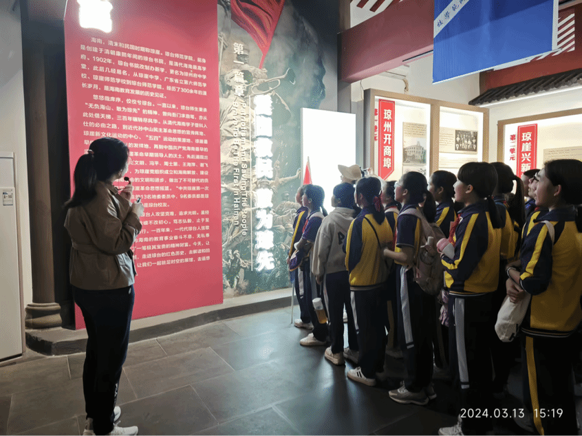 之后,在馆长杨艳红和我馆专职教师祁文婧的带领下,同学们分批走进馆内书院展厅和革命展厅,通过老师们的生动讲解、图片资料和文物展览等形式,同学们得以了解琼台书院三百年来的发展历程和卓越成就,深入领会海南文化的历史沿革及琼崖红色革命的光辉历程。