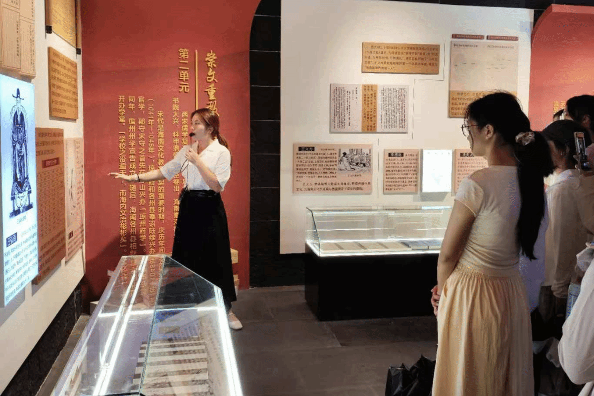 琼台书院博物馆作为历史文化与红色记忆的重要载体,承载着丰富的教育资源。同学们怀着崇敬与好奇的心情踏入书院,仿佛穿越时空,走进了那段波澜壮阔的历史。在我馆学生讲解员的带领下,同学们先后参观了琼崖革命思想摇篮展、《搜书院》壁画、琼州文脉:琼台书院历史文化展,并了解了琼台书院博物馆三百年弦歌不辍的历史。