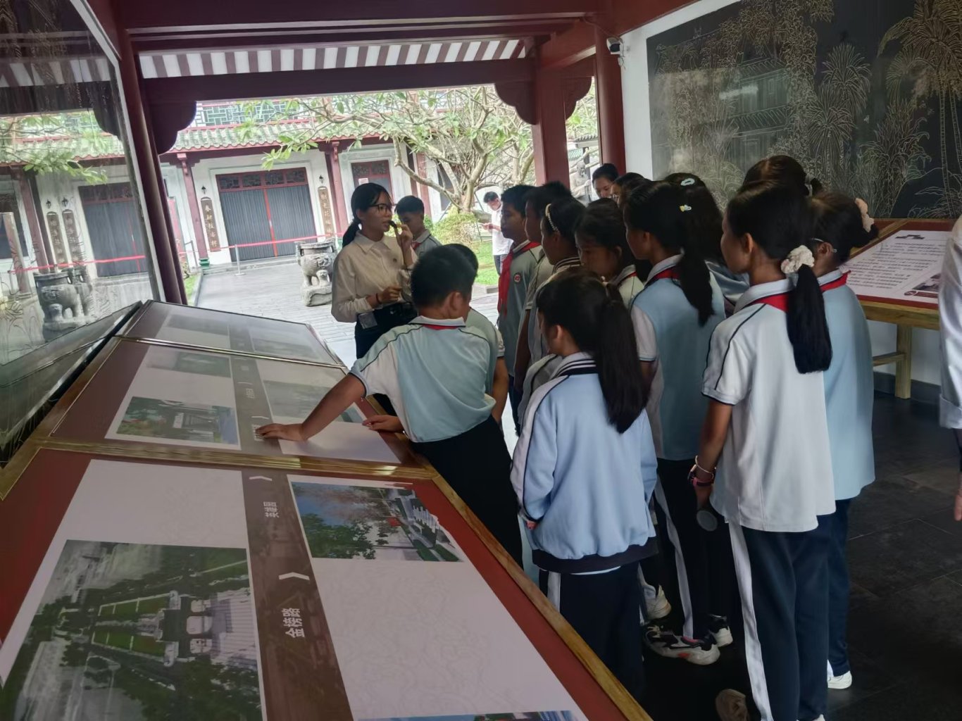 在我馆学生讲解员的带领下,师生们深入了解了琼台书院的历史沿革、文化贡献及教育理念。这些内容不仅让学生们对琼台书院的历史文化有了更加全面的认识,也激发了他们对历史文化的浓厚兴趣,增强他们对本土文化的认同感与自豪感。