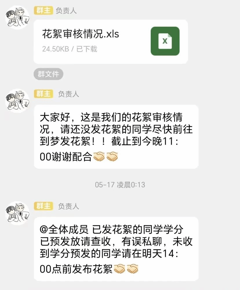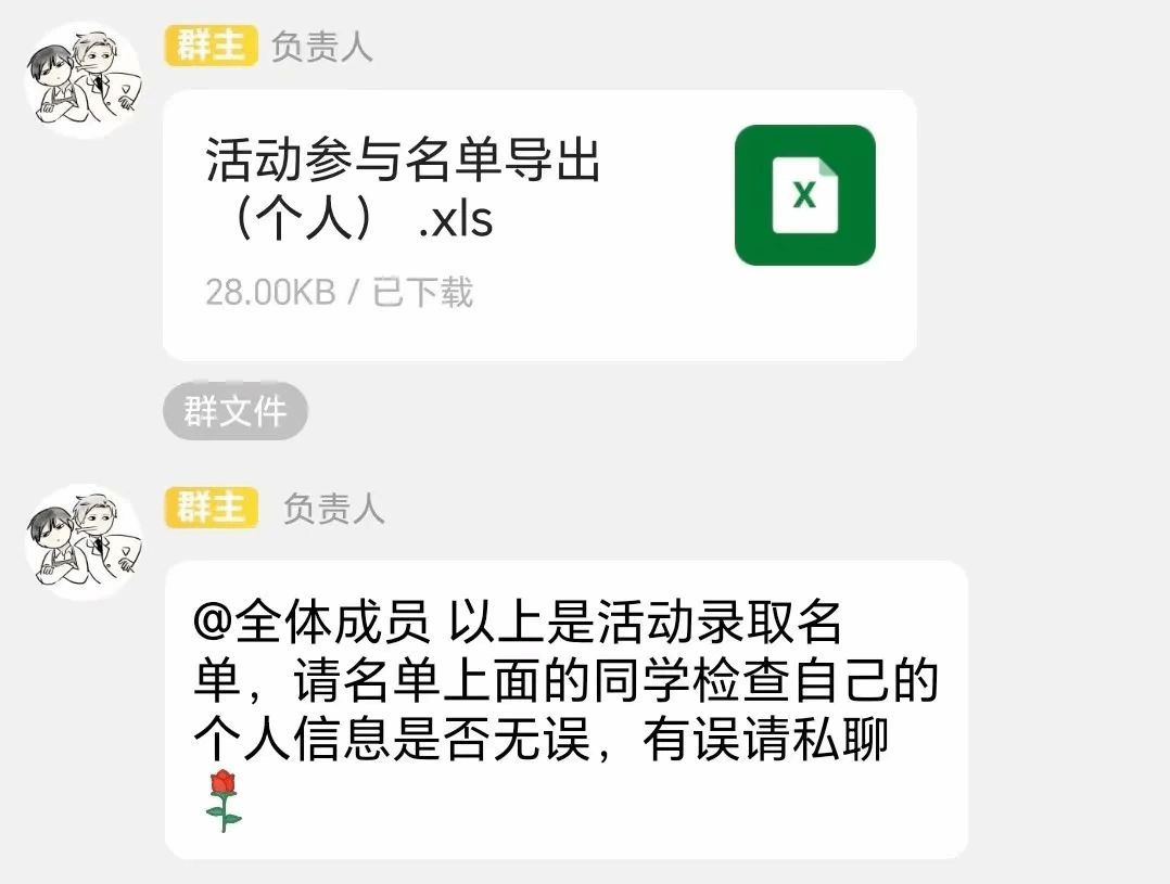 活动结束,工作人员提醒参赛者发布花絮、对花絮内容进行审核,最后公布此次比赛的获奖名单。