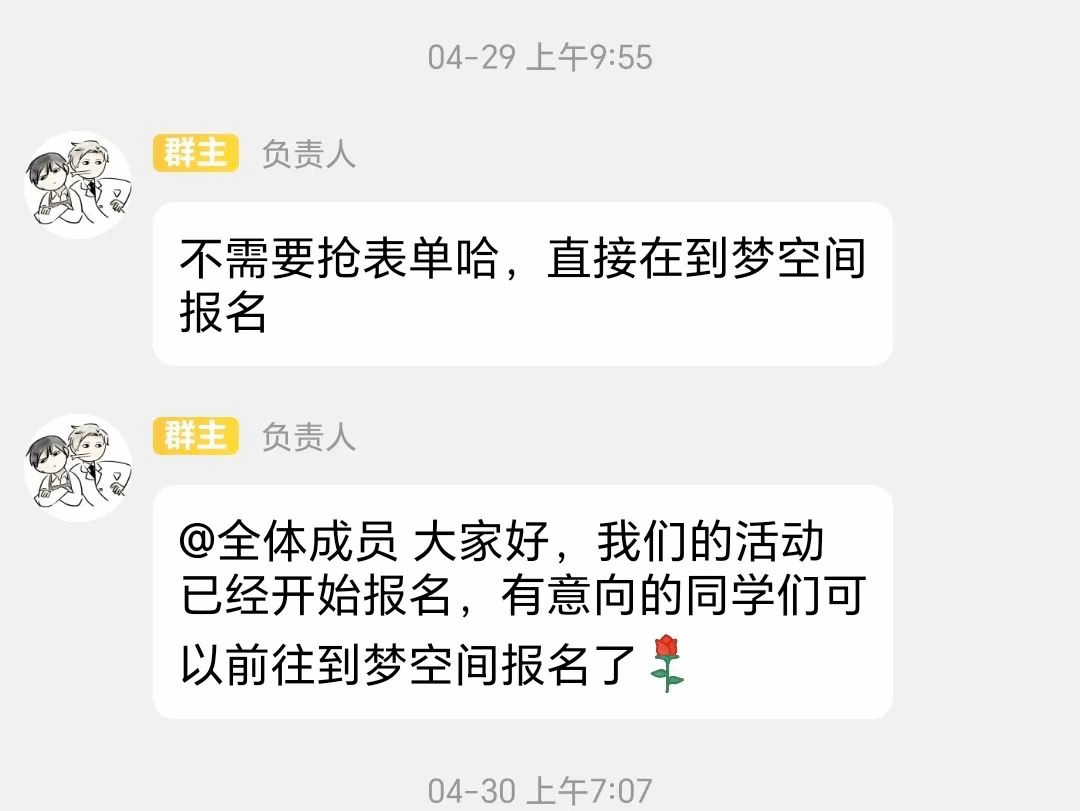 活动开始,工作人员提醒同学们在到梦空间报名,并核对参赛成员名单。