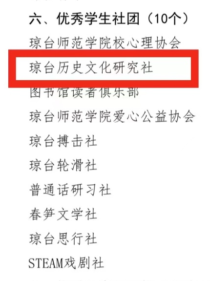 琼台历史文化研究社得到的优秀成绩,离不开社团每一位成员的努力,希望在未来的日子里,在大家的齐心协力下,社团能够不断发展和壮大,让更多的人能够了解琼台校史与海南优秀历史文化,传承红色血脉,延续革命薪火!