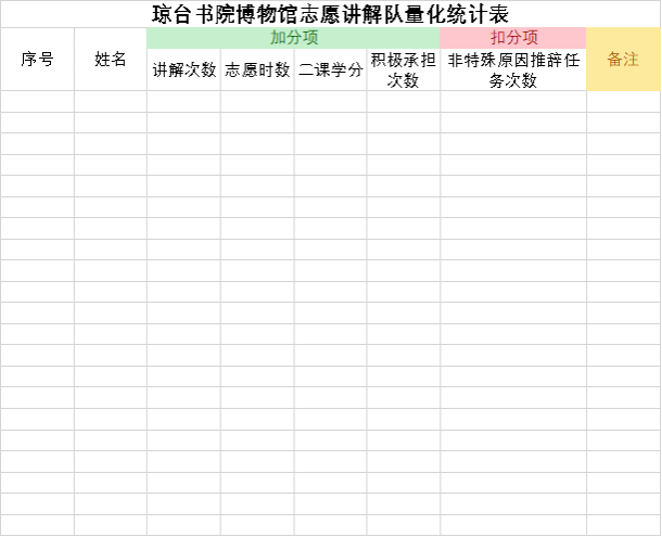 (附件1:琼台书院博物馆志愿讲解队量化统计表)