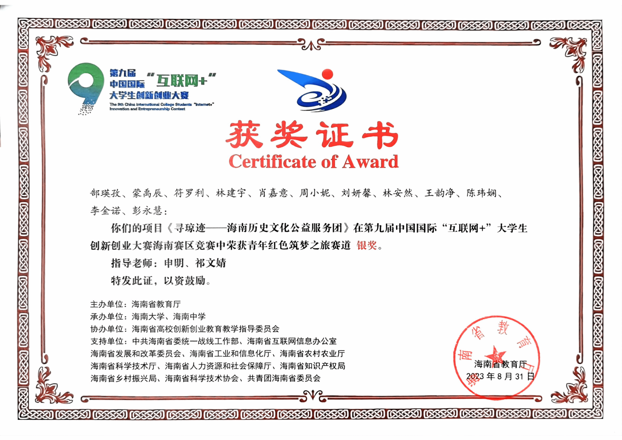 4. “优秀志愿者”有机会参与寻琼迹项目组,共同推进“寻琼迹——海南历史文化公益服务团”项目发展并参与各项大赛(“互联网+”、“挑战杯”、青年志愿服务项目等创新创业大赛)。