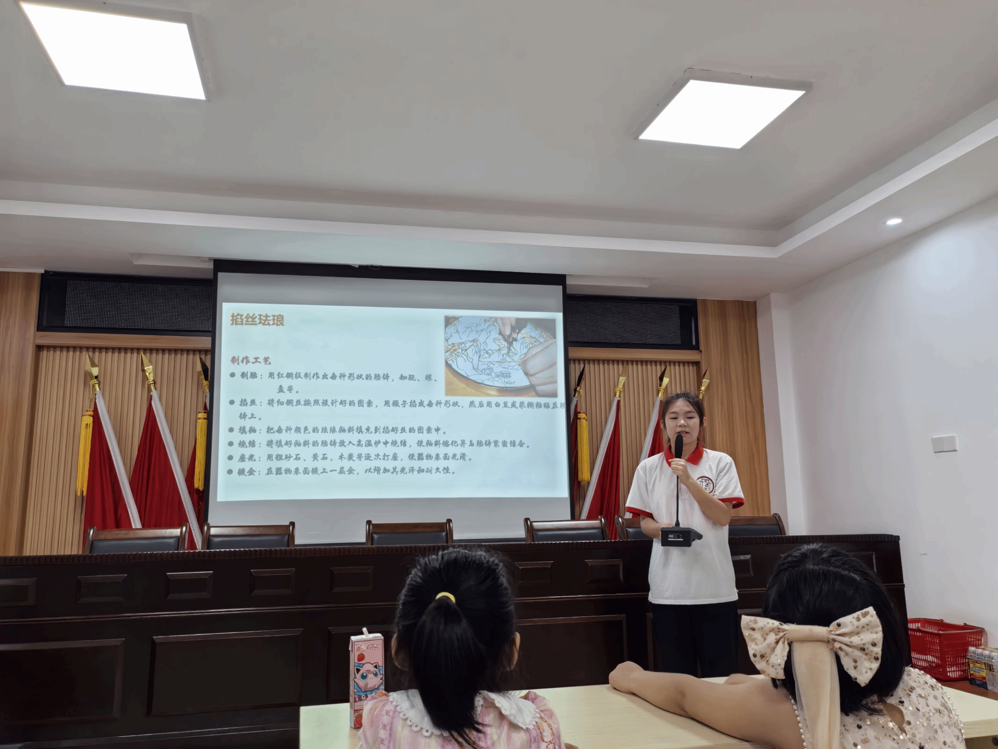 活动现场,琼台书院博物馆专职教师兼项目指导教师祁文婧亲临助力,以其对琼台书院文化的深刻理解与满腔热忱,带来精彩分享,为这场联结千年掐丝珐琅与百年书院文化的交流之旅,注入温暖力量,也让大家对本次活动增添了更多期待。