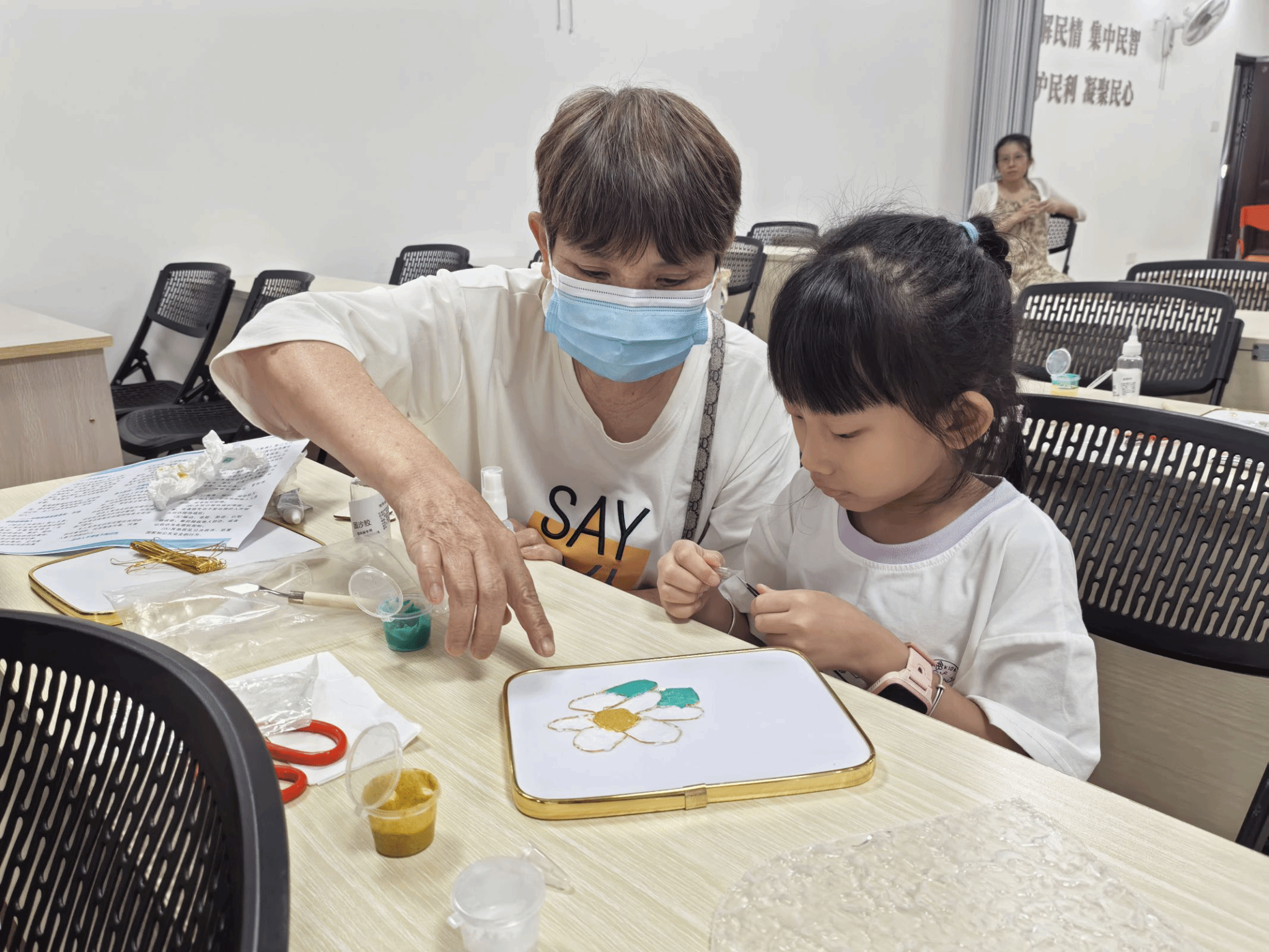 在历史的长河中,非遗技艺如同一颗璀璨的明珠,散发着独特的魅力。2025年6月15日,“寻琼迹——海南历史文化公益服务团”走进美兰区和平南街道光阳社区,顺利开展第一期进社区志愿公益活动,为青少年与非遗文化之间搭建起了一座桥梁,让千年工艺掐丝珐琅与百年书院历史文化展开了一场跨越时空的对话。